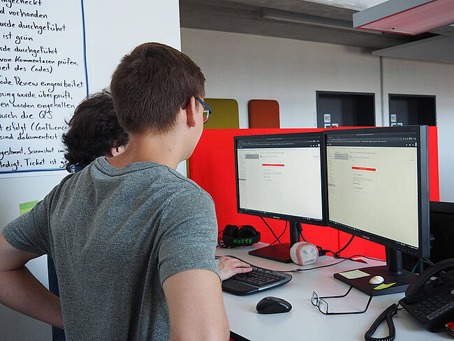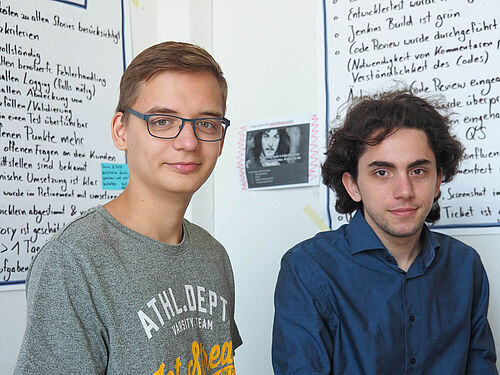 Der Start ins Projekt war für die Azubis nicht einfach. „Die ersten paar Wochen waren pure Überforderung“, erinnert sich Malte Böttcher. „Vor allem technologisch.“ Weder er noch Taylan Bacakci hatten zuvor mit der Programmiersprache TypeScript oder den Webapplikations-Frameworks Angular und Spring Boot gearbeitet.